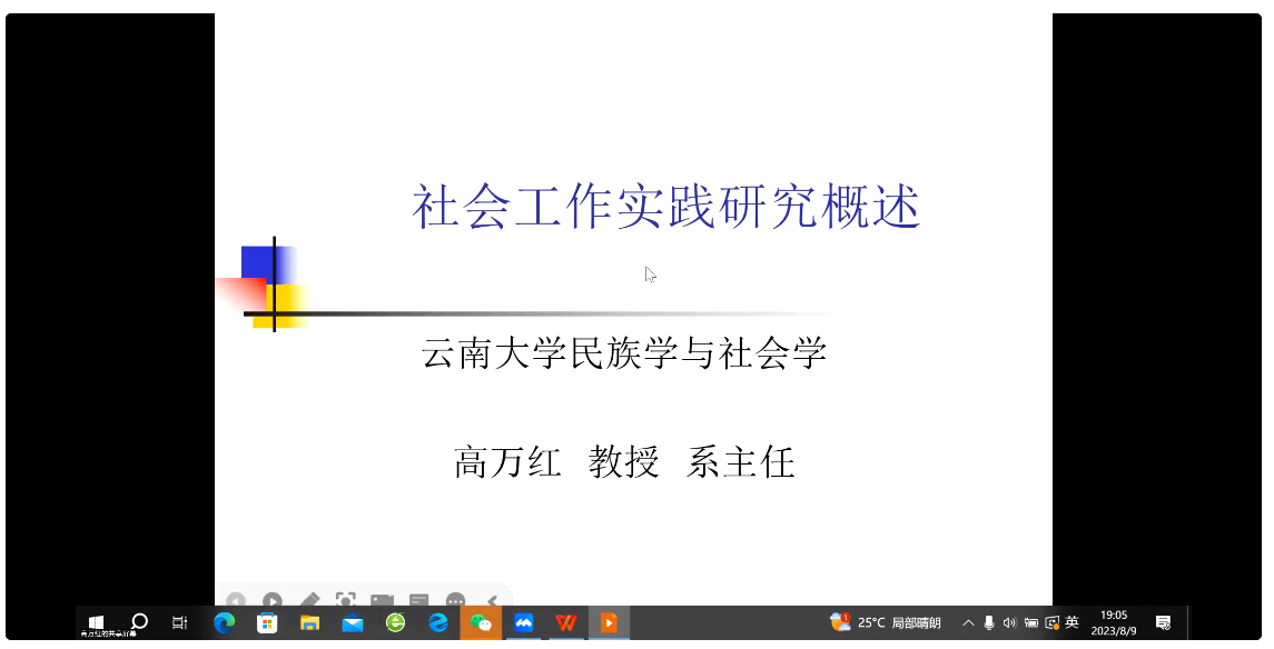 2023年8月9日晚上,云南大学社会工作系主任高万红教授给bibo必博官方网站师生带来了一场精彩纷呈的学术盛宴。高教授是云南大学社会工作教育协会副秘书长、中国社会工作学会常务理事、国务院妇儿工委办儿童智库专家。在本次学术沙龙中,高教授以“社会工作实践研究概述”为主题深入浅出地讲述了社会工作实践研究的理论和实践。此次学术沙龙由bibo必博肖芒教授主持,bibo必博官方网站全体教师及社会工作专业的硕士研究生参加了此次学术沙龙。