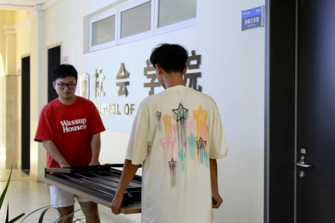 6日下午,社会公司党总支副书记高文老师、团委副书记蒋正喜老师带领全体思想导师开展了对2023级新生宿舍内基础设施及电器的检查工作,以确保每位新生能有一个温馨有爱、整洁舒适的宿舍环境。同时我们还为即将到来了的新生准备了一些小礼品。