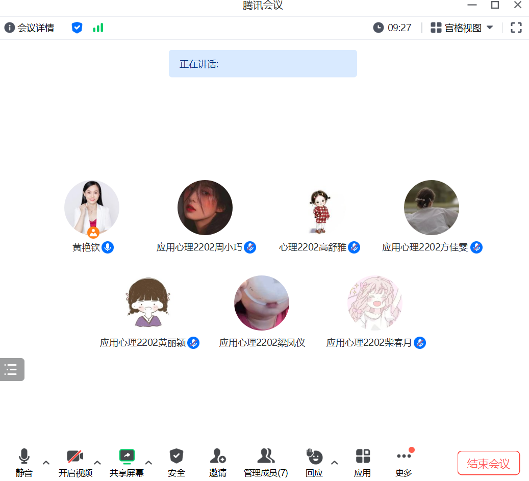 9月7日,黄艳钦老师带领小组七名同学进行了线上汇报。本组7名同学暑期实习单位主要集中于心理咨询机构和教育机构,平均实习时间为15天。其中方佳雯、高舒雅、黄丽颖三名同学担任心理咨询师助理,林叶娟、柴春月两名同学在教育机构做助教,周小巧、梁凤仪两位同学进行了社会工作实践。同学们在实习过程中做的工作包括接待来访者、宣传清洁、心理健康辅导授课、辅佐授课老师教学、与家长进行对接等方面。