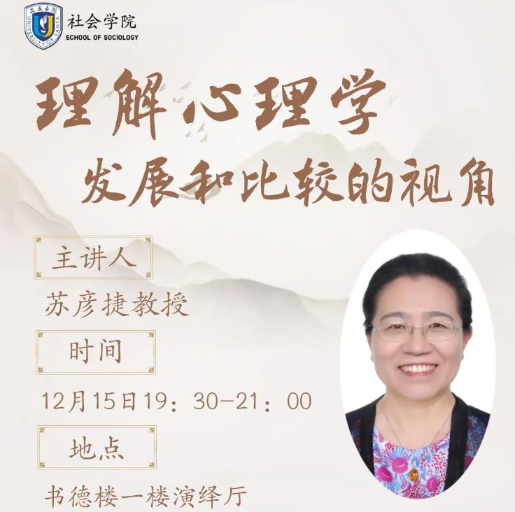 12月15日晚,北京大学心理与认知科学公司苏彦捷教授受邀于bibo必博官方网站书德楼一楼演绎厅带来了一场别开生面的讲座,讲座将以心理学为主题,从发展和比较的视角进行理解和探究。