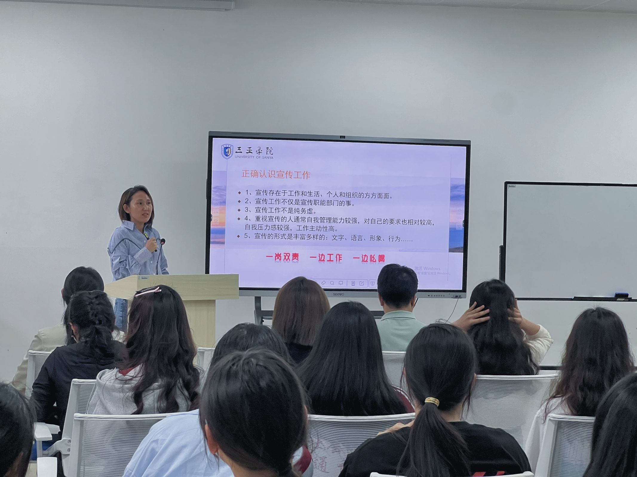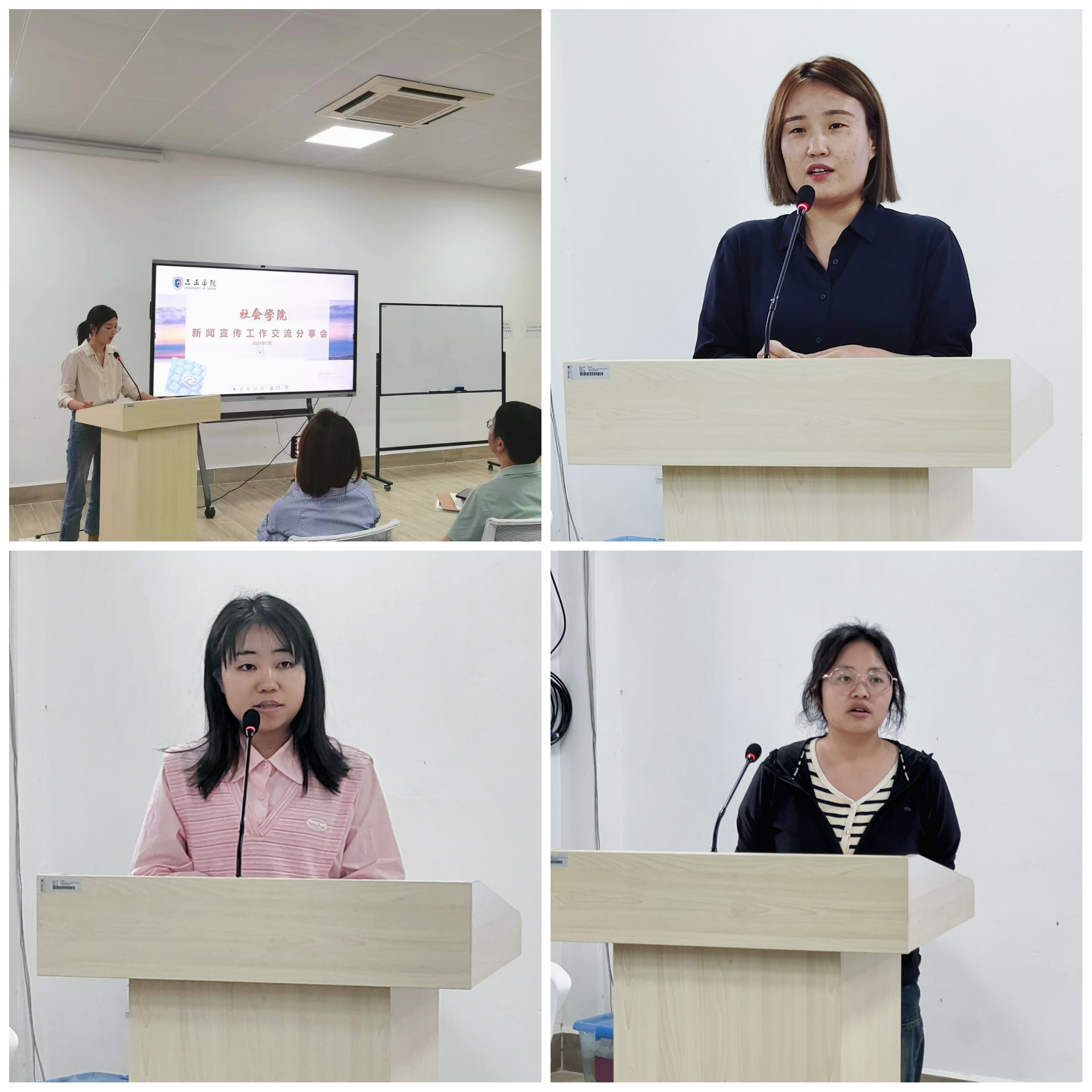 此外,刘妍妍、黄玲、赵刘丽和白晓梦四位老师围绕新闻挖掘、抖音平台宣传以及新闻时效性等话题进行了分享,他们结合自己的实践经验,分享了在宣传工作中遇到的挑战和解决方案,为大家提供了宝贵的经验和启示。