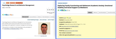 高敏老师在SSCI期刊《Psychology Research and Behavior Management》发表英文论文《Exploring Family Functioning and Adolescent Academic Anxiety: Emotional Stability and Social Support as Mediators》