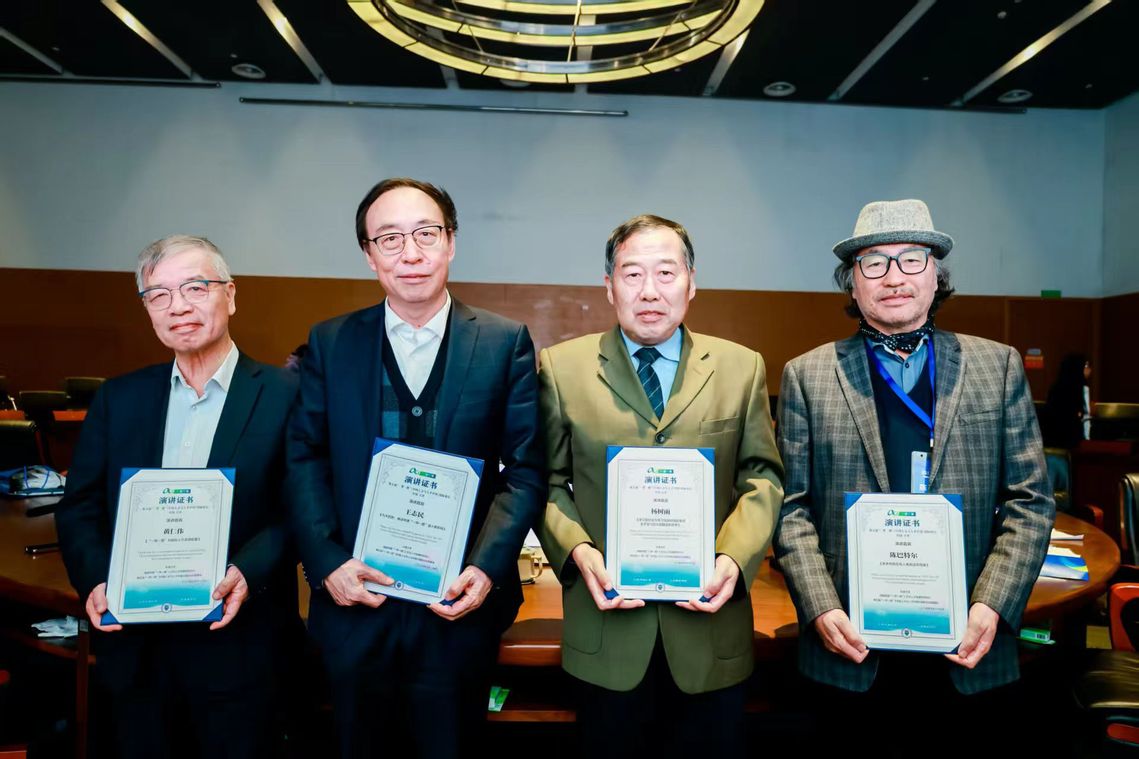 (图3:陈巴特尔教授(右一)在论坛获颁荣誉证书后与其他嘉宾合影,见证学术殊荣)