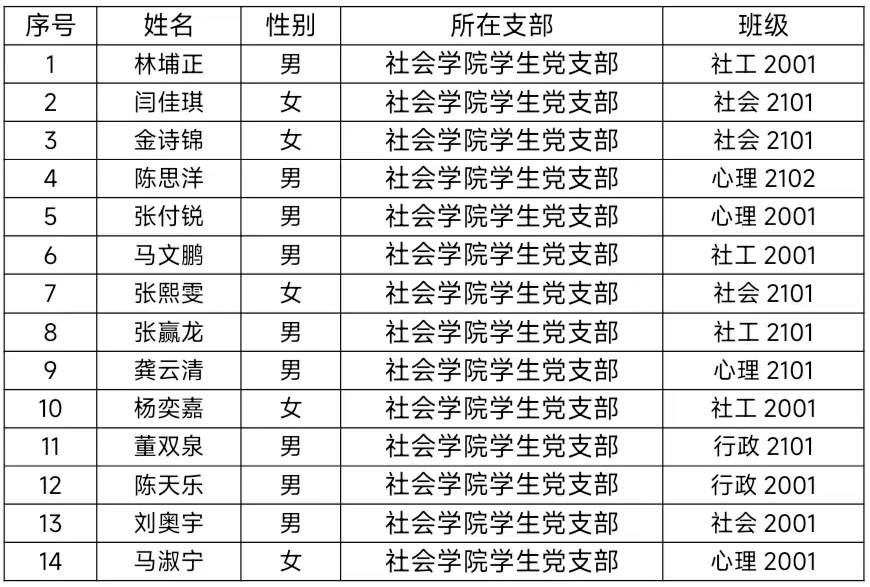 - 社会公司党总支下半年拟发展预备党员名单公示
